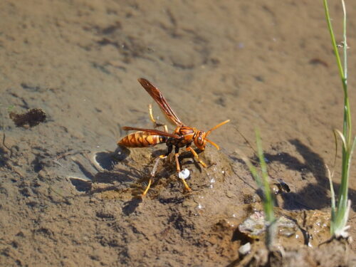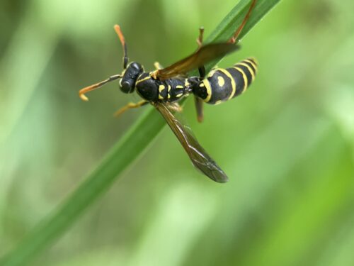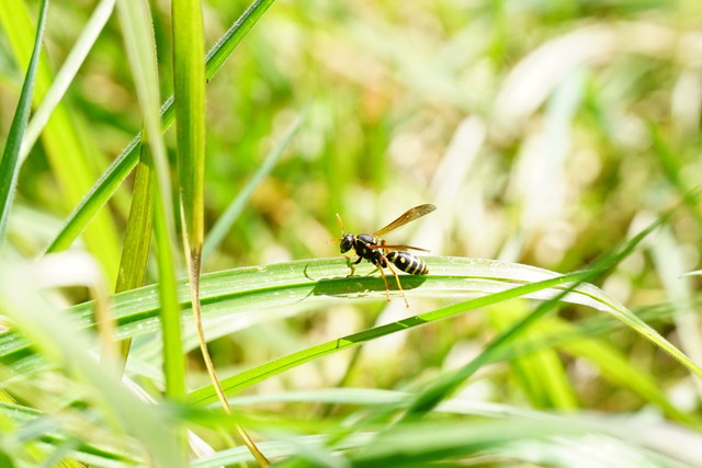 体長12〜18mmとアシナガバチの中では比較的小型の種で、比較的おとなしいとされています。低い場所や植え込みの中に巣を作ることが多いです。